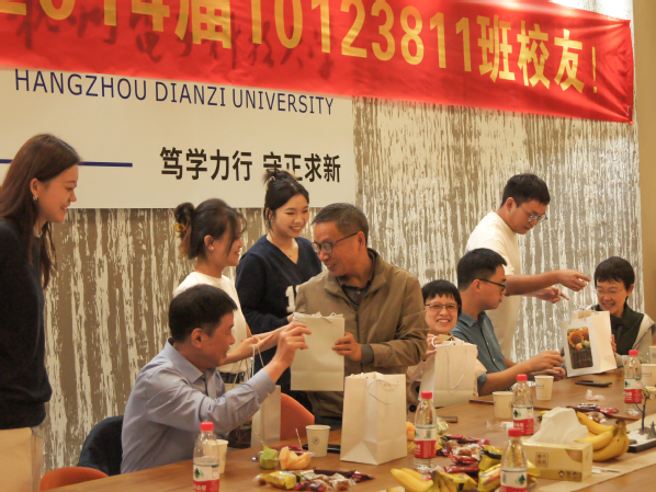 在自由交流环节中,校友们与老师们进行了深入的交流,共同回忆往昔,展望未来。校友们还精心准备了纪念小礼物赠送给老师们,以表达对老师们教育之恩的感谢。此外,校友还给老师们准备了蛋糕,增添了交流会的欢乐气氛。