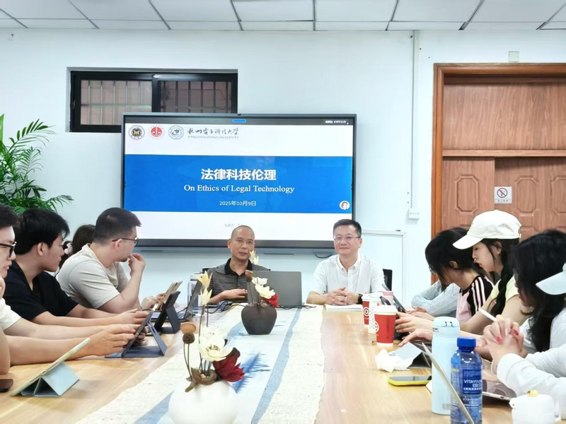2025年5月份,杭州电子科技大学聘请浙江泰杭律师事务所主任汪政为校首批产业教授。10月9日,应数字法学研究院邀请,汪政教授以《法律科技伦理》为主题,与法律专业硕士们开展了深入的交流。本次交流聚焦法律科技与法律伦理交叉领域,贴合研究生群体对前沿学术议题的探索需求,为在场研究生带来了一场兼具专业性、前瞻性与实务价值的知识盛宴。数字法学研究院院长李庆峰教授主持。