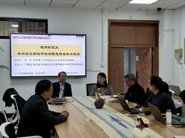 11月14日下午,由杭州电子科技大学人文艺术与数字媒体学院、法学院主办,数字人文研究院 社会学系承办的学术讲座及研讨会在10教233成功举行。本次讲座特邀华东理工大学社会与公共管理学院汪华教授和杭电中国科教评价研究院特聘丁敬达教授,围绕“提问的艺术——期刊论文写作中的问题意识与学术观照”展开深度分享。