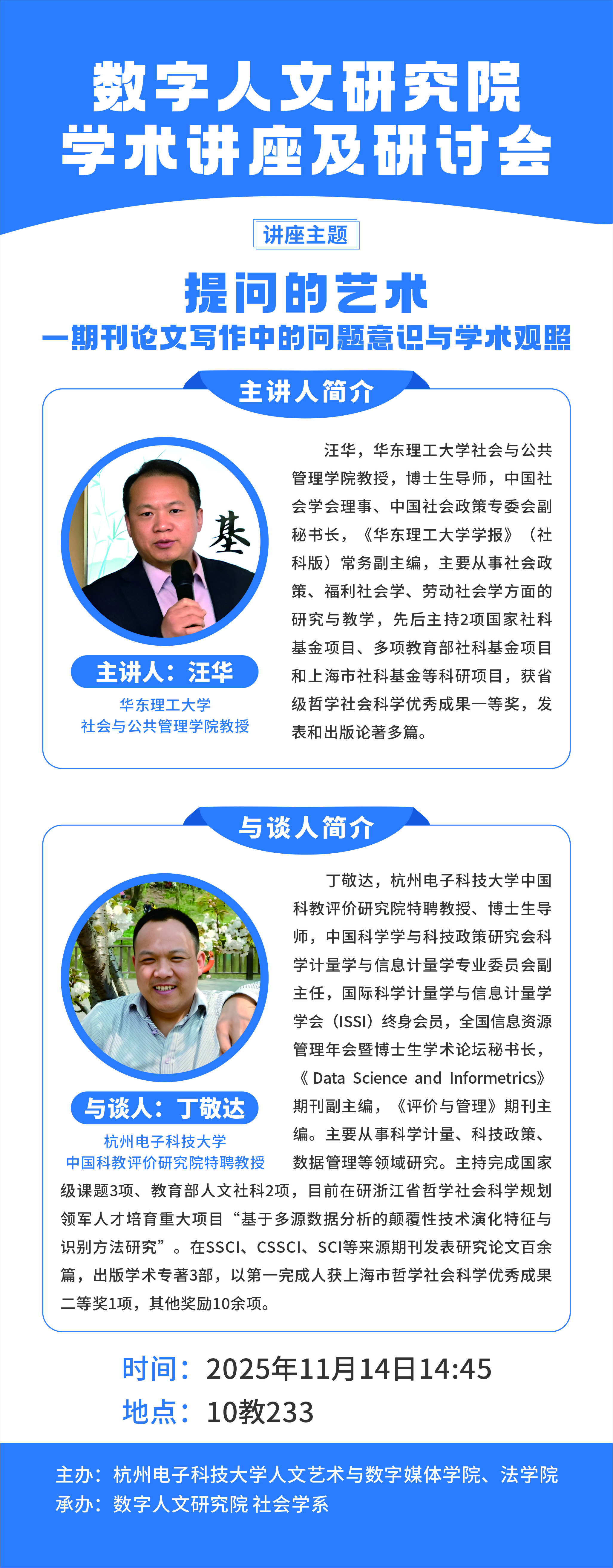 专家讲座通告—华东理工大学汪华教授:提问的艺术—期刊论文写作中的问题意识与学术观照