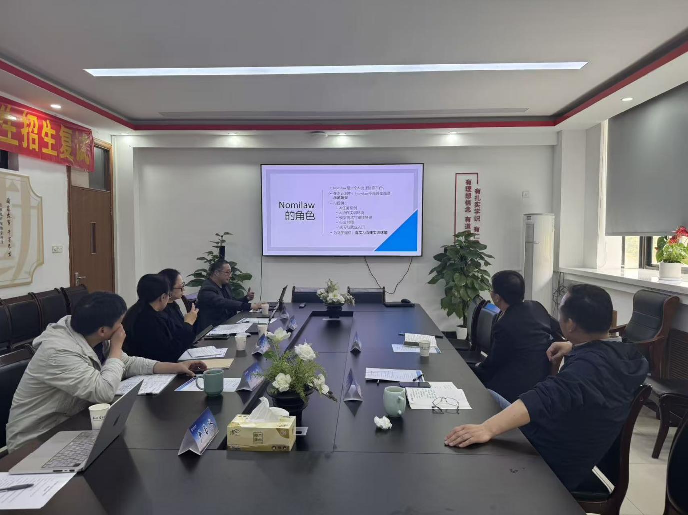 在座谈交流环节,戚明钧与参会人员围绕课题研究合作、跨学科课程共建、实习实践基地建设、AI治理人才培养模式等核心议题展开充分探讨。参会各方结合杭电学科特色与天册律师事务所、Nomilaw法律AI平台的实践资源,深入交流了AI治理人才培养体系构建、实训平台搭建、能力认证机制等具体内容,明确了“法律+计算机+管理”的交叉培养方向,以及“课程+实训+示范场景”的培养模式,达成了共建共享、协同育人的共识。