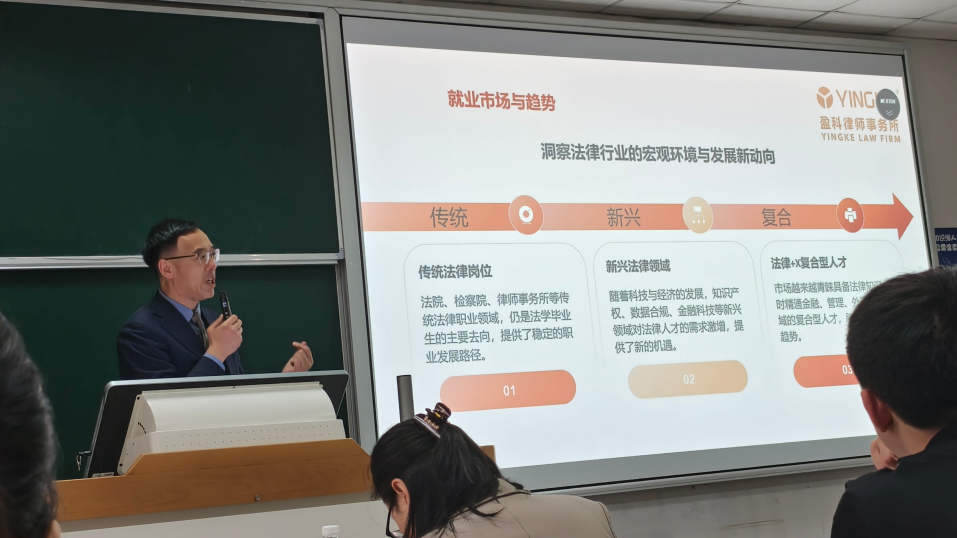 为推进法律实务与思政教育深度融合,助力学生筑牢专业根基、明晰职业方向,4月13日下午,“法律实务与律师成长之路”专题讲座在第三教研楼101教室顺利举行。本次活动特邀北京盈科(杭州)律师事务所管委会副主任、工程建设法律事务部主任张锋平律师担任主讲人。